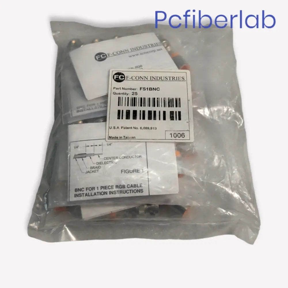 The FS1BNC BNC mini coax compression connectors, offered by F-CONN INDUSTRIES, are conveniently packaged in a lot of 10. These orange connectors are specifically engineered for optimal performance with 24-26AWG RGB mini coax cables, ensuring a precise fit and superior signal integrity. Their compression design creates a highly secure and reliable connection, which is crucial for professional mini coax applications requiring consistent performance and durability. PCfiberlab proudly provides these high-quality FS1BNC connectors, making them an excellent choice for installations where robust and long-lasting connections are paramount.