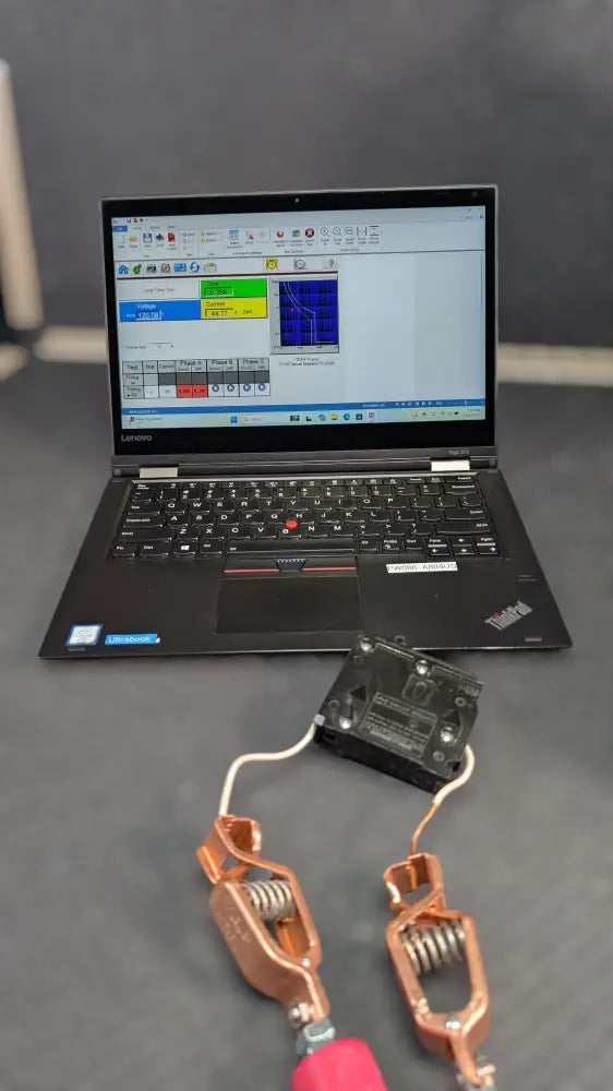 A dedicated PC laptop, a LENOVO YOGA i5-7300 with 8GB RAM and a 256GB SSD, running Windows 11. This laptop comes pre-loaded with essential software: Megger SPI, Power DB 11.3, all relevant manuals, and drivers, making it a complete, ready-to-use solution for data acquisition and analysis during your high current tests.